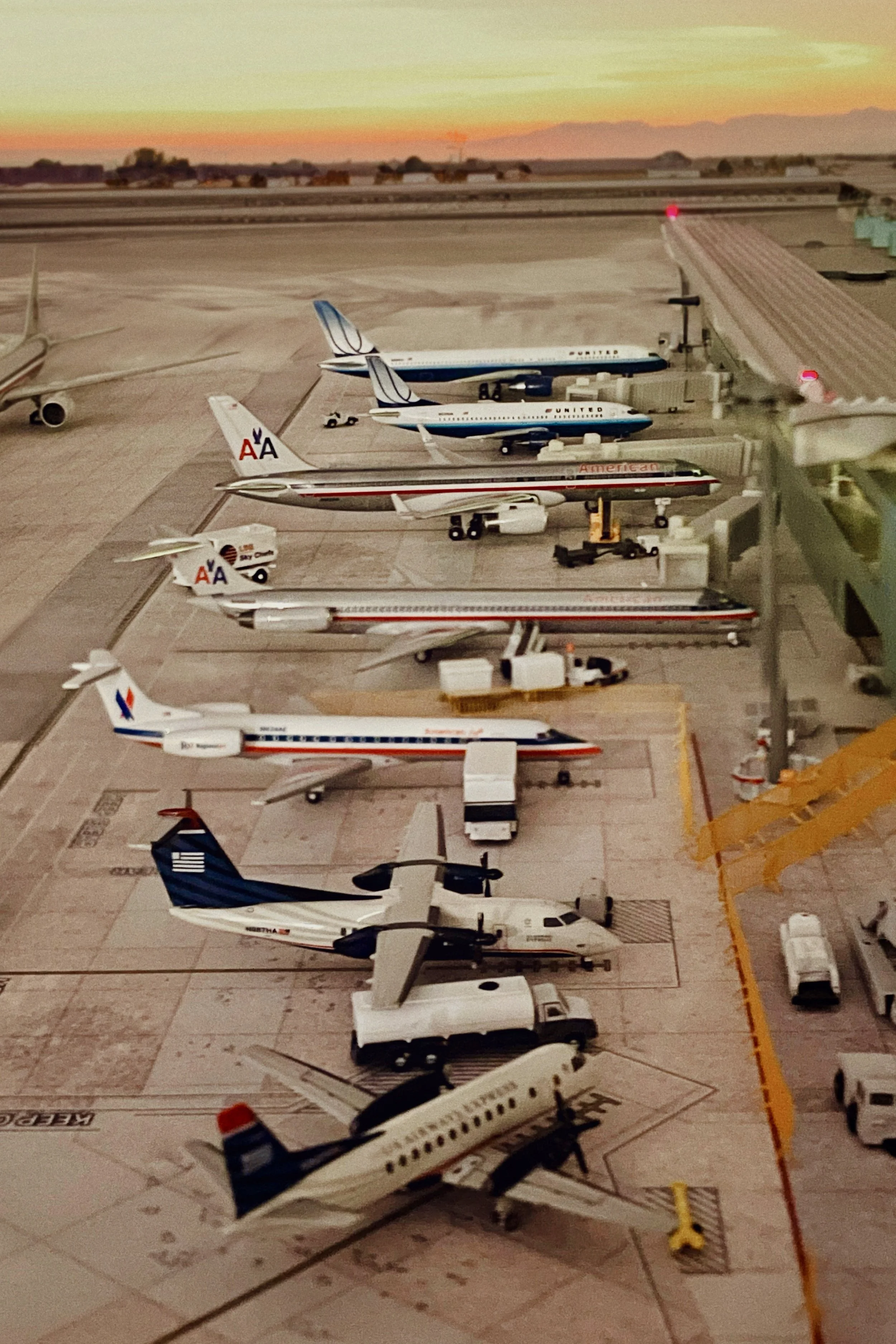 A warm morning sunrise at Phoenix Sky Harbor Int. Ground crew will relish in the coolness of the Moring before the punishing dry heat rolls in.
